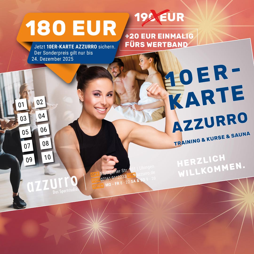 Wichtiger Hinweis: Der Monatsgutschein ist gültig für Menschen ohne aktive oder ruhende azzurro-Mitgliedschaft.